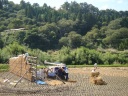 JR木次線 トロッコ列車「奥出雲おろち号」通過。 稲こぎ作業中、皆で見送りました。